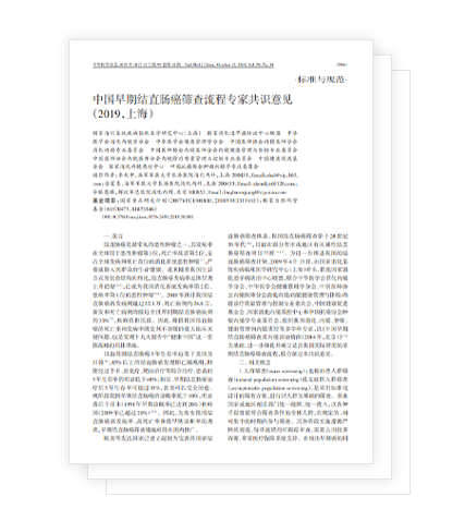 中国早期结直肠癌筛查流程专家共识意见(2019,上海)
