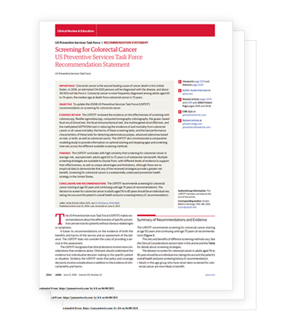 USPSTF指南:结直肠癌筛查(2016版)